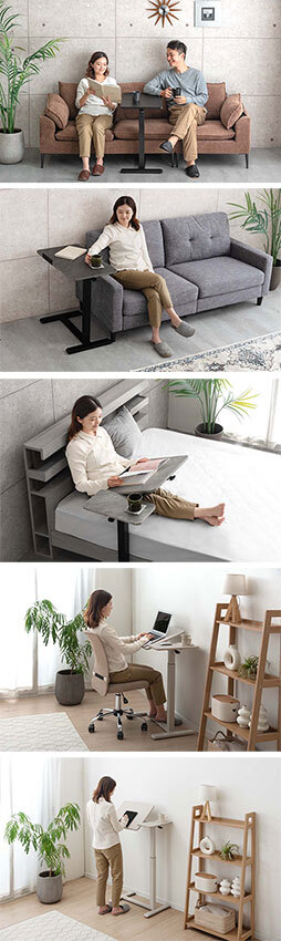 無段階での高さ調整が可能なので、ソファやベッド、デスクチェアといった幅広いシーンに合わせて使用できる。
