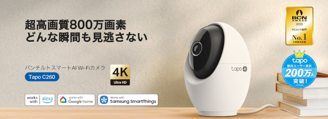 ティーピーリンクジャパンは、パンチルト対応のスマートAI Wi-Fiカメラ「Tapo C260」の国内向け販売を8月21日に開始する。価格はオープンで、実勢価格は1万450円前後の見込み。