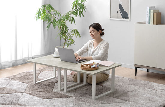二つのテーブルを分ける「セパレートスタイル」では、メインとサイドで用途を変えるといった別々での使用に適している。