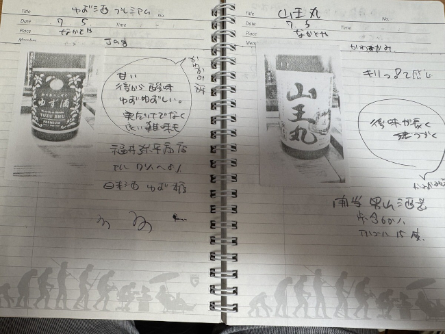 ですが、はろぷりで日本酒ノートを付けるようになってからは、一緒に飲んでいる仲間に「なにやってるの?」と面白がってもらえて、一緒に感想を考えてもらうきっかけが増えました。「紙」をプリントして貼って書く。一人でチマチマやっているよりかは、周囲の興味を引きやすい行動だと思います。