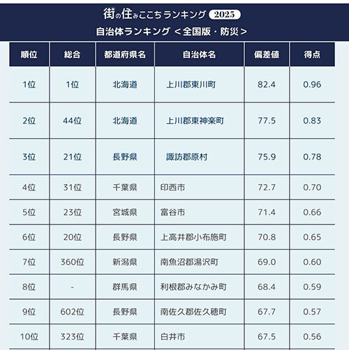 「街の住みここちランキング2025 自治体ランキング<全国版・防災>」を