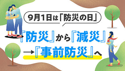 毎年9月1日は「防災の日」、9月は「防災月間」です。自然災害が激甚化し、今まで以上に「減災」や「事前防災」の重要度が高まりつつあります。今年からは「減災」または「事前防災」を念頭に、お住まいの市町村のウェブサイトで各種ハザードマップ(洪水・地震・津波・土砂災害など)の確認や非常用持ち出し袋の中身の確認・更新をおすすめします。