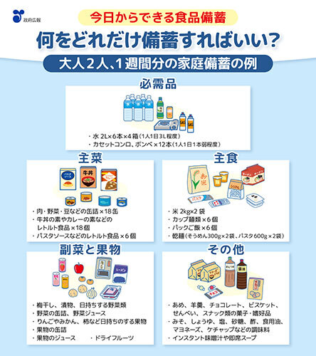 非常用持ち出し袋の準備や水・食料などの備蓄なら今すぐできるはず。