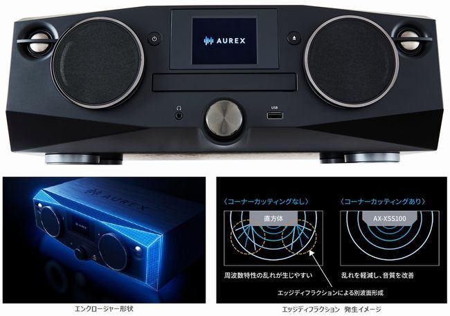 XSS100の特徴は三つ。独自開発したDSP(Digital Signal Processing)のAUREXサウンドプロセッサーとスピーカー構造、周波数特性の乱れを抑えた筐体デザインの3点である。それぞれを紹介しよう。
