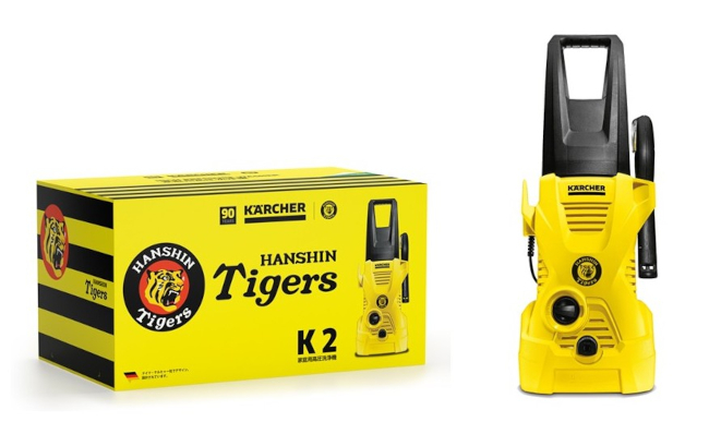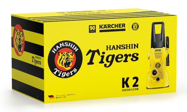 ケルヒャーは創業90周年。阪神タイガースは創立90周年。今回のコラボレーションは共に90周年を迎えたことを受けて実現したもの。製品は、ケルヒャーの人気高圧洗浄機「K 2」をベースに、阪神タイガースの公式ロゴを正面中央にあしらった特別仕様モデルとなっており、実用性とコレクション性を兼ね備えている。