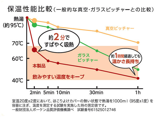 さらに、猫舌の人でも飲みやすいと感じる温度である、約55~67℃をキープする。