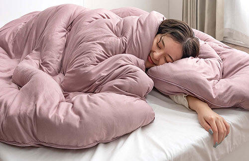 寝返りをうっても、まるで布団に沈み込むような安心感ともっちりとした感触によって、一度横になると抜け出せない「沼る」寝心地を体感できる。