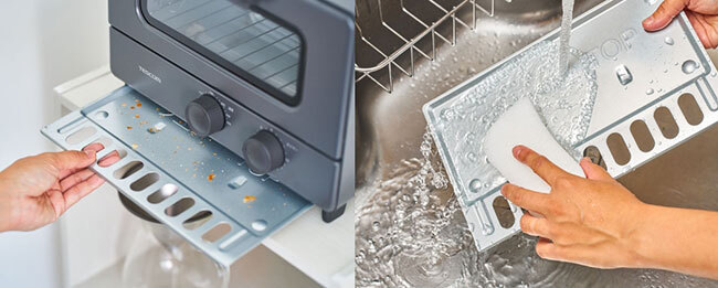 トレイはスライド式になっており、取り出しやすく、丸洗いもOKなので、お手入れも簡単だ。