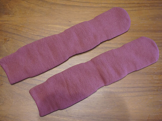 もちはだ ハイソックスを手に取って、最初に感じるのは、圧倒的なボリューム感です。通常の綿靴下の約4倍の厚みで、これはいかにも暖かそうという印象を持ちました。内側の鷲尾式起毛は、実際に触ってみると、密度が高いのにふわふわしていて、特殊なものであることが直感的に分かります。