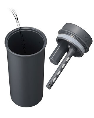 本体上部からそのまま水を入れられるので給水しやすく、水タンク容量は400mL、1時間あたりの加湿量は約50mL。従来機種「Korobaan ポータブル」の水タンク部分のデザインを変更したことで、シンプルでよりスリムに見えるデザインとなった。