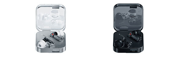 デザインは、Nothingらしいスケルトンな外観で、金属を使用した内部構造が透けて見える仕様となっている。充電ケースのベース部分は、100%リサイクルアルミニウム製。接着剤を使用せず金属とプラスチックを接合し、27の精密な工程で組み上げた一体成形構造となっている。なお、本体と充電ケースはIP54規格の防水防塵仕様だ。