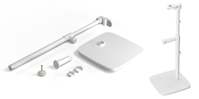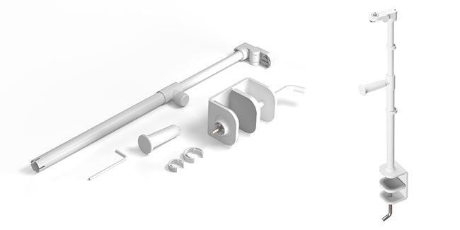 「Elgato Stand for Key Light Neo」は、「Elgato Key Light Neo」専用に設計されたデスクマウント型スタンドで、高さや角度を自由に調整でき、理想的なライティング環境を実現する。