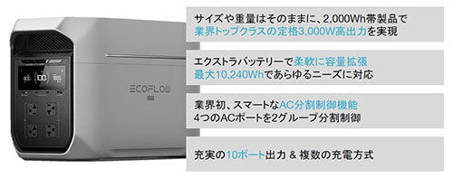 EcoFlowがバッテリー容量2000Whクラスのポータブル電源の新製品を発表 3000Wの超高出力でさまざまな家電製品に給電ができて使い勝手もさらに向上!