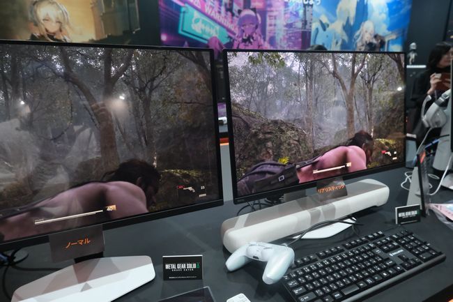 BenQブースでは、ゲーミングモニターの中でも「没入感」にフォーカスしたMOBIUZシリーズを展示。10月に発売される240Hz 26.5インチモニター「EX271UZ」、さらに240Hz 31.5インチの「EX321UZ」などを中心に試遊スペースを設けた。新製品では、ゲーム制作者側の意図をくみ取り「クリエイターとの橋渡し役」となるゲーミングモニターを目指したという。QD-OLEDパネルを生かした美しい映像表現はもちろんのこと、AIを活用して映像を最適化する「Smart Game Art」をはじめとした、BenQ独自の機能を展開し、ビビッドさを実現しながらも白飛びしない豊かな色彩表現を体感できる。