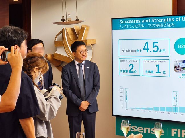 予約販売開始の9月24日に行われた先行体験会で、同社の張喜峰代表取締役社長は「2023年は薄型テレビの販売台数シェアが4位でしたが、昨年は3位になりました。26年は2位を目指しています」と挨拶を述べた。