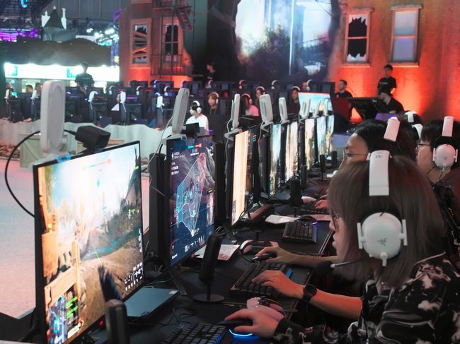 新作ゲーミングPCを試す来場者