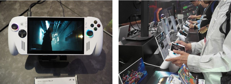 また、「ROG Ally」で、ハンドヘルドのゲーミングPCというカテゴリーを確立したASUSも、Xbox版の携帯型ゲームPC「ROG Xbox ALLY」シリーズを25日から先行展示。来場者の興味を引いていた。ラインアップは「ROG Xbox Ally」と「ROG Xbox Ally X」の二つ。本体カラーがホワイトの「ROG Xbox Ally」は、カジュアルゲームやハイビジョンの720pゲームタイトルに最適化。4コア8スレッドの「AMD Ryzen Z2 A プロセッサ」に16GBのメモリーと512GBストレージを搭載した。また、本体カラーがブラックの「ROG Xbox Ally X」は、フルハイビジョンの1080pゲームなどでも快適に遊べる、よりハイパワーなモデル。8コア16スレッドの「AMD Ryzen AI Z2 Extremeプロセッサ」に24GBメモリーと1TBのストレージを搭載。トリガーボタン自体に振動を伝えるインパルストリガーも備えた。いずれも本体左側に配置した「Xboxボタン」で、Xbox Game Barをすぐに起動。ゲームやアプリの切り替えもスムースに行えるのが特徴だ。