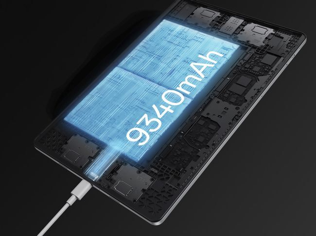 バッテリー容量は同価格帯の中では最高クラスの9340mAh。動画は約11時間、音楽は約80時間の連続再生が可能となっており、充電切れを気にせずコンテンツを楽しめる。33W SUPERVOOCと33W PPS急速充電に対応したほか、800日のスマートパワーセービングにより、長期保管でも電池残量をキープできる。