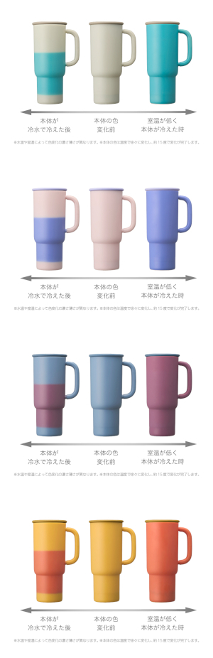 「Korobaanサーモカラー加湿器」は、冷水を入れて本体が冷えると水が入っている部分の色が変化し、室温が低く本体が冷えた際には本体全体の色が変化する加湿器。本体カラーがアイボリーならターコイズへ、ピンクならブルーへ、ネイビーならパープルへ、イエローならオレンジへと色が変わる。