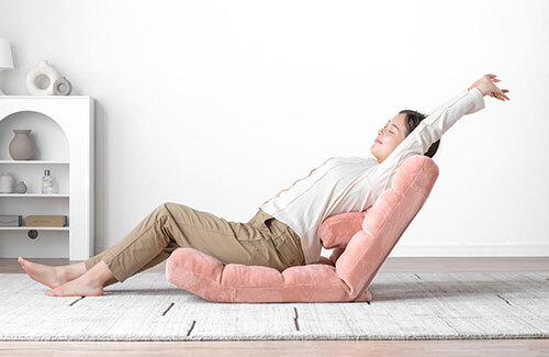 長時間座ることになる映画鑑賞やゲームプレイといった用途はもちろん、腰にしっかり当てて気軽にストレッチもできる。なお、一般的な座椅子では骨盤が傾斜して姿勢が崩れやすいが、「腰ピタ座椅子」なら正しい姿勢をキープしやすいので、長時間座っても疲れにくい。