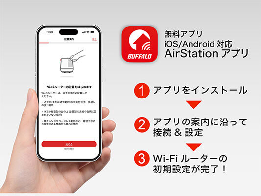 さらに、スマートフォンアプリ「AirStationアプリ」を使用した簡単セットアップが可能で、同アプリを経由することによってプロバイダー情報を含む設定を簡単に引き継げる「スマート引っ越し」にも対応している。また、家庭にあるスマート家電をサイバー攻撃から守る「ネット脅威ブロッカー2 ベーシック」も搭載する。