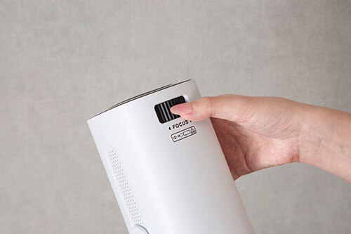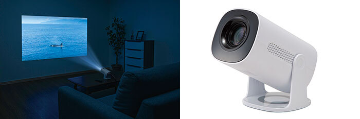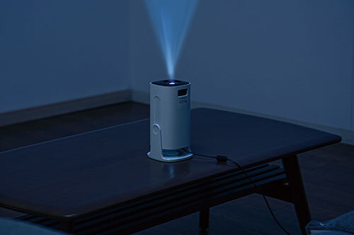 本体とスタンドが一体化しているので、複雑な設置作業は必要なく、見たい場所に置いて直ちに投影を始められる。また、角度調整も容易で壁や天井など多彩な投影スタイルに対応する。