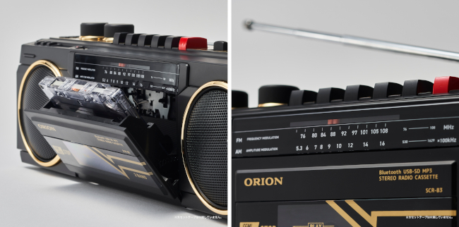 「ORION Bluetooth機能搭載 ステレオラジオカセット SCR-B3」は、1970~80年代に若者を夢中にした「オーディオブーム」の頃、オーディオに夢中だった企画開発担当者が、当時は高額で買えなかった悔しさとあこがれた機能を思い出しつつ、音楽を本気で楽しむというコンセプトのもと企画した「俺たちの青春ラジカセ」シリーズの最小モデル。「本体の軽量化」「コンパクト化」「生活に馴染むデザイン」をテーマに、幅広い世代の方がラジカセをより身近に感じ、手に取ってもらいやすいよう、カッコよさと柔らかさを表現した製品デザインを目指しており、BluetoothやSDカード、USBといった最新機能を搭載しつつ、80年代に流行したラジカセを彷彿とさせるデザインとカラーを採用している。