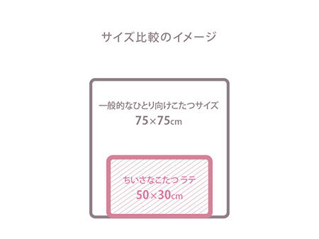 「ラテ」と一般的な1人用こたつとのサイズ比較イメージ