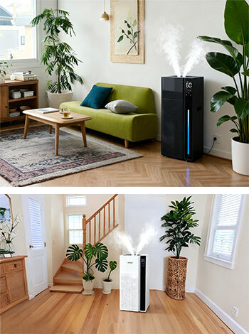 加熱式と超音波式を組み合わせたハイブリッド式を採用し、約40℃のミストを吹き出して部屋の温度を下げることなく加湿したい場合や、寒い季節に心地よさを求める際に適した「ヒートミスト」、季節や室温、好みに合わせてミストを自由に切り替えることによって、常に快適な空気環境を提供し、部屋の温度に影響を与えたくない夏場や、リフレッシュしたい時に適した「クールミスト」に対応する。
