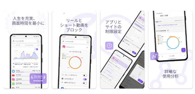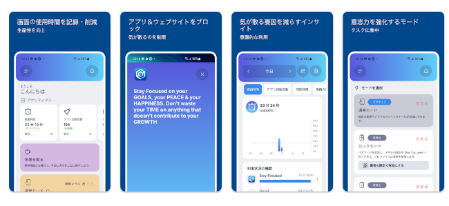 Stay Focusedは、スマホ依存症から抜け出すためのさまざまな機能を搭載したアプリです。主な機能は、次の通りです。・1日の使用時間制限:1日の使用時間を制限する