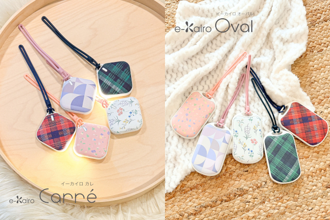 エレスは今秋、繰り返し使える充電式カイロ「e-Kairo(イーカイロ)」シリーズから、LEDライト付きの「e-Kairo Carre(イーカイロ カレ)」と、モバイルチャージャー機能付き「e-Kairo Oval(イーカイロオーバル)」を、2025年新デザインで発売する。