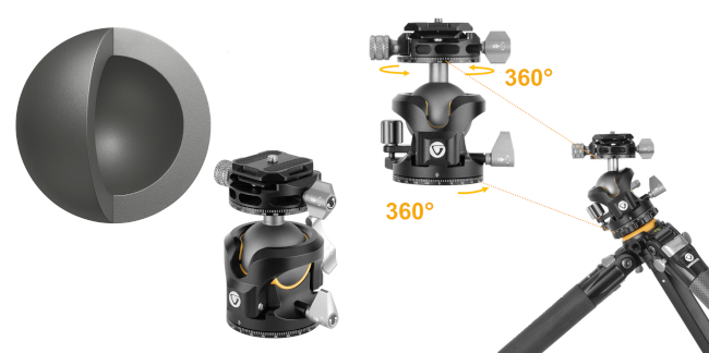 新開発の「LBP-S自由雲台」を標準搭載するとともに、アルマイト処理を施した中空構造のセンターポールによって、軽量化と高い保持力を両立させ、アルカスイス互換で360°パノラマ機構を備えた、精密かつ滑らかな操作性を実現し、多様な撮影スタイルに対応する。