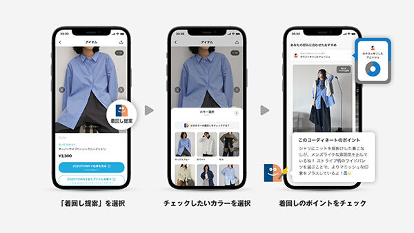 あわせて、「niaulab by ZOZO」の知見を生成AIによる説明文生成にも活用することで、ジャンルの特徴や体型カバーのロジックを踏まえた「着回し提案」を実現し、コーディネートのポイントを解説できるようになり、ユーザーは自分に合った着こなしをより具体的にイメージすることが可能になる。