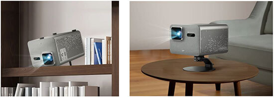 オートフォーカスや縦横台形補正、色調や明るさ調整など六つの自動調整機能を搭載し、設置も簡単だ。天吊りや逆さ置きにも対応し、調整式フットを使えば、映像位置の高さを自在に調整できる。別売りのスタンドなら、位置変更がより簡単になる。