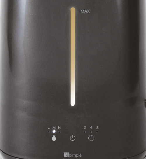 HIGH・MIDDLE・LOWの3段階での加湿量調整に対応し、鉄筋洋室6畳(木造なら3畳)の部屋なら、HIGHモードで約12時間の連続加湿が可能で、就寝時から朝まで部屋を加湿できる。また、ナイトライト代わりになり寝室での使用に便利なLEDライトを備えている。