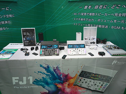 以前この【カットエッジ】でも取り上げた3D音響を実現する鹿島建設のスピーカー「OPSODIS 1」も出展していた。バイノーラル技術を応用したスピーカーだ。通常、ヘッドホンでしか得られないバイノーラル効果を、スピーカーでも実現したところが画期的な製品。クラウドファンディングで9億円を集めたことでも話題を呼んだ。実際に試聴してみると、目の前にある小さなスピーカーから上下前後左右と、あらゆる方向から音がするように聞こえる。体験コーナーでは、開発に携わった鹿島建設 立体音響プロジェクトチームの村松繁紀 事業推進統括部長が直々に説明。体験希望者が列をなしていた。3D音響を実現するエンジンとして、アナログ・デバイセズのDSP(Digital Signal Processor)が採用されていることから、OPSODIS 1は同社ブースで出展されていた。また【対談連載 千人回峰】でも取り上げたミューシグナルも出展。クラウドファンディングで1億円以上を集め、この9月に出荷開始したばかりのスタンドアロンのDJマシーン「FJ1」がメインだ。当初の24年10月出荷予定からは1年弱遅れてしまったが、無事にやり切った。ハードウェアの性能が前作「GO-DJ Plus」よりも格段にアップし、リナックスベースに変更したことで、ソフトウェア面でだいぶ苦労したという。