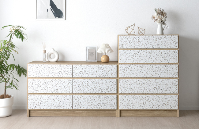 タンスのゲンは11月7日に、テラゾー柄と木目調を掛け合わせた家具「Terrazzo furniture」シリーズ(テラファニ:Terrafurni)を、公式オンラインショップ、楽天市場店、Yahoo!ショッピング店にて発売した。