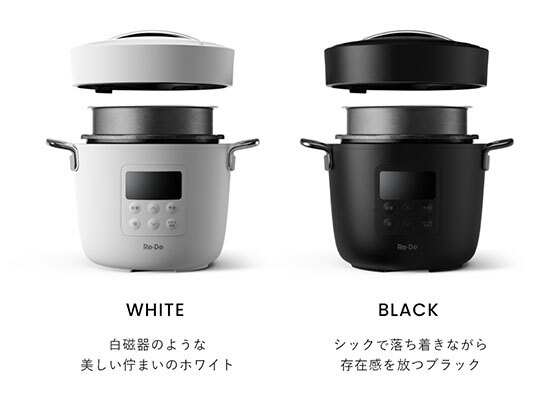 A-Stageは11月14日に、心地をリデザインするウェルネスブランド「Re・De(リデ)」から、炊飯機能と調理性能を大幅にアップデートした新型電気圧力鍋「Re・De Pot(リデポット)」の一般販売を、公式オンラインショップなどで開始する。カラーは、ブラック、ホワイトの2色。価格は1万9800円。