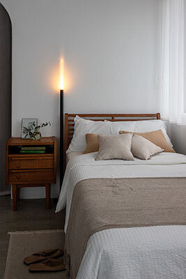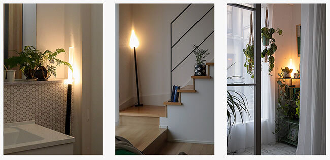本体は重さ1.6kgと軽量で、T字型の台座とシリコン製の滑り止めで安定性を確保しているため、これまでフロアライトを置けなかったわずかな隙間にも、壁に寄り添うように設置できる。