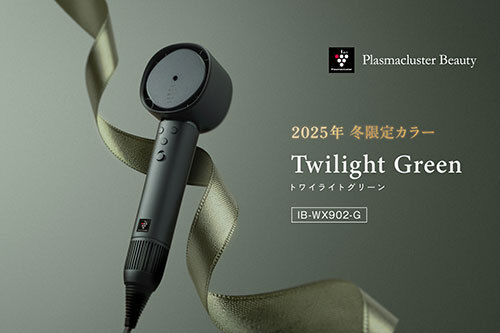 「IB-WX902」は、髪を立体的に押し分けて速乾性を高める独自のテクノロジー「ドレープフロー X4」や美髪に効果的なプラズマクラスターを搭載し、「髪の根元まで風が届いて速く乾く」「さらりとした仕上がりになる」といった使用感を実現するとともに、スリムでシンプルなデザインを採用している。今回、発売されたトワイライトグリーンモデルは、2025年冬の限定色として「もみの木の葉」を思わせるグレイッシュで深みのある色合いに、黄昏時の静寂と輝きを重ねて表現した。
