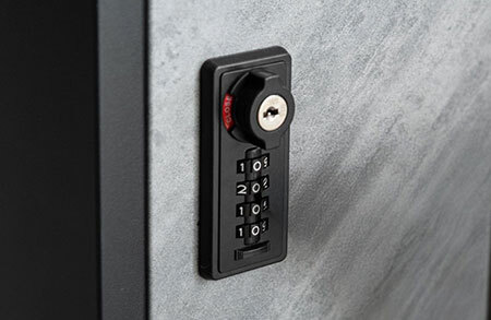シンプルデザインの宅配ボックスには押すだけで鍵を閉めることができるプッシュキーがついている。施錠を簡単に行うことができるため、宅配業者の人が使いやすい設計になっており、安全に使用することができる。