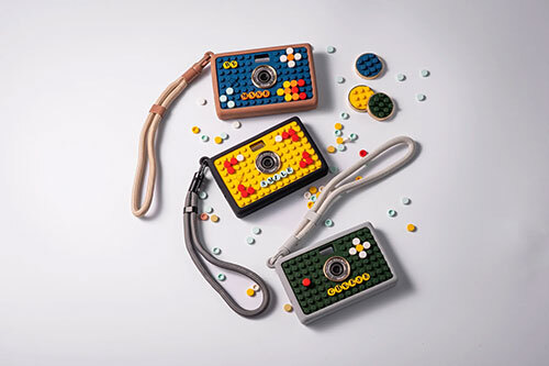 「Aura Bricks コレクション」は、カメラ本体およびアクセサリーをブロックモチーフにデザインした新シリーズ。子どもの頃に夢中になってブロックを積み上げて、「世界にたった1つの作品」をつくった際の感覚を楽しめる。各パネルがブロックのようになっており、自分なりに組み合わせられるため、好みのブロックを選んだり、カラーの組み合わせを楽しんだりと、遊び心あふれるデザインに仕上げられる。