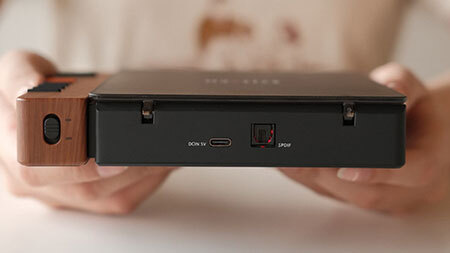 新製品は、レトロデザインにSyitren独自のオーディオ技術を融合したBluetooth対応CDプレイヤー。デザイン面では、ウッドとホワイトの2色展開のミニマルな外観、アクセントとなるオレンジ色の再生/一時停止ボタンが特徴で、インテリアとの調和や存在感を意識しているという。