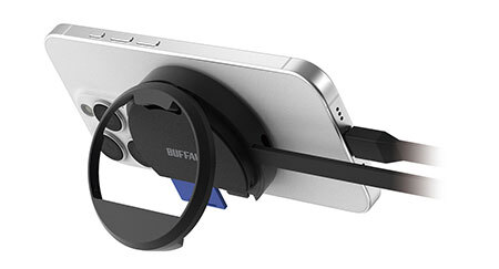 新製品は、MagSafe対応のスマートフォンまたはスマートフォンケースにマグネット固定で取り付けて使用するカードリーダー。ケースにも干渉しづらい設計なので、ケースを取り付けたままでも使用可能。