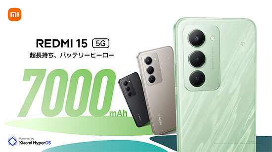 シャオミ・ジャパンは12月19日、大容量バッテリーを採用したスマートフォン「REDMI 15 5G」を直営のXiaomi Store各店や家電量販店、オンラインショップなどで発売する。カラーはリップルグリーン、チタングレー、ミッドナイトブラックの3色。市場想定価格はメモリー8GB/ストレージ256GBモデルが3万6980円、4GB/128GBモデルが3万1980円。予約受付中だ。