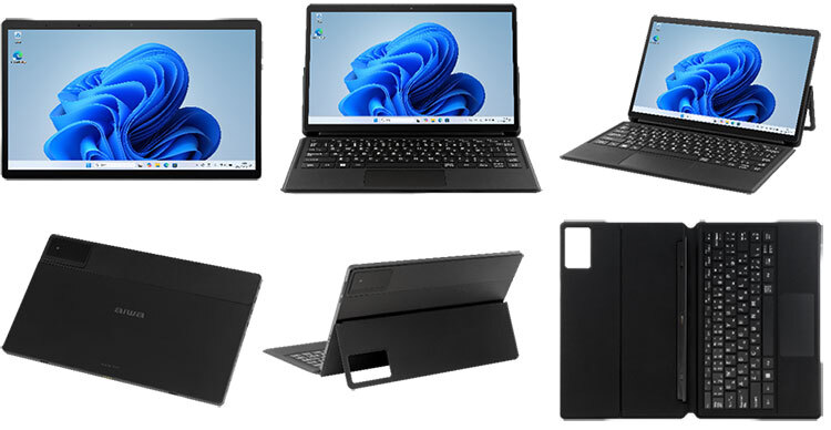 「aiwa tab WS13」「aiwa tab WS13L」ともに、液晶ディスプレーと比較して深みのある黒を実現する有機ELディスプレーを採用し、鮮やかな映像を映し出せるWindows 2 in 1タブレット端末。快適な日本語入力が可能な、キーボード兼カバースタンドを標準で備えつつ、13.3インチの大画面ながら重さは830gと軽量で、キーボードの着脱によって携帯性と作業効率を両立させられる。