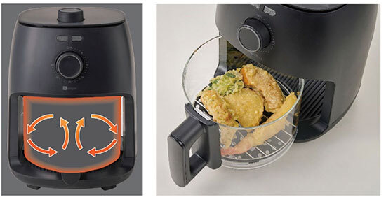 熱風の循環によって油を使わずに揚げ物やグリル料理が作れる
