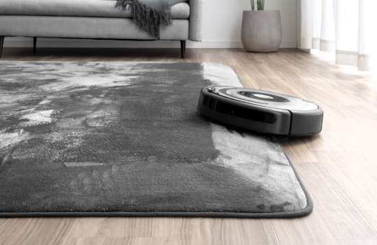 ロボット掃除機の走行性にも配慮し、ラグの縁でロボット掃除機が止まってしまう、ラグの上にロボット掃除機が乗り上げられないといった不便さを軽減している。