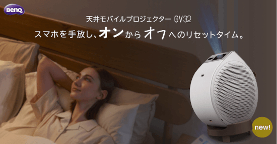 Google TV OS内蔵でBluetoothスピーカーにもなる 寝室に最適なBenQの天井モバイルプロジェクター「GV32」