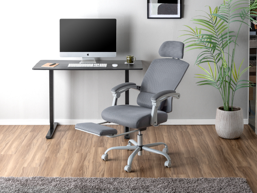 背もたれと座面には、通気性に優れたメッシュ素材を採用しているので、長時間座っても熱がこもりにくく、蒸れを抑えた快適な使用感を実現した。